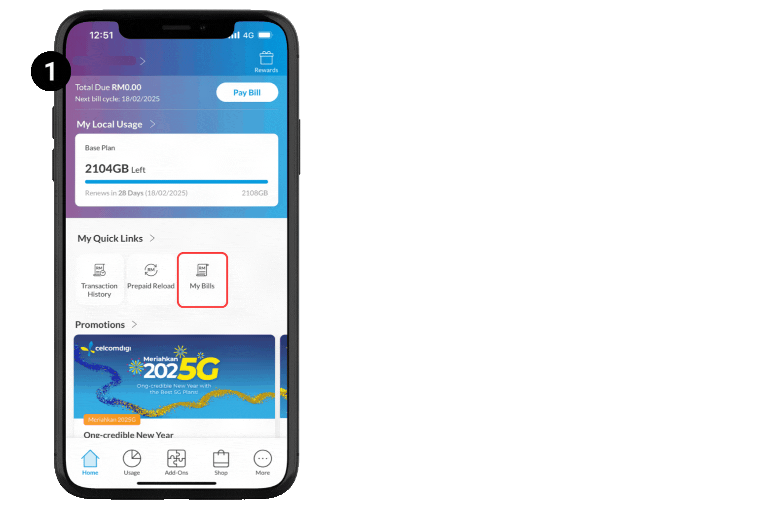 If you're a postpaid subscriber, you can download your annual bill statement via the Celcom Life App (for Celcom subscribers).