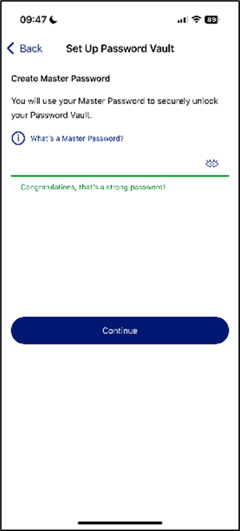 Step 1: Select ‘Password Vault” And tap ‘Continue’