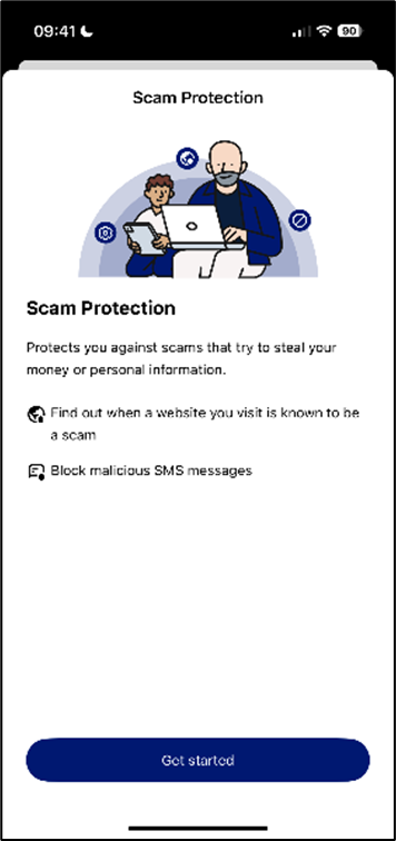 Step 1: Get started on Safari Protection Select ‘Scam Protection’ Then tap ‘Get started’ Tap on ‘Safari Protection’