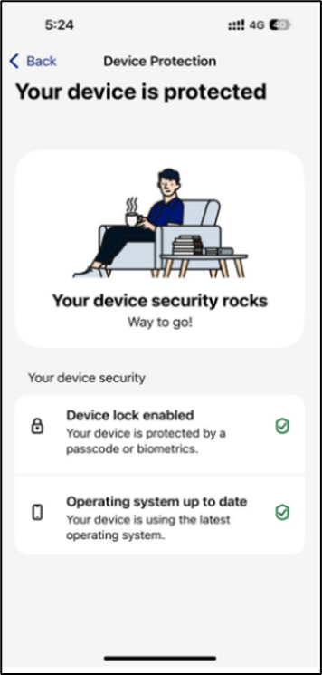 Steps: Select ‘Device Protection’ Tap ‘Get Started’ Device Protection is now activated to ensure your OS is up-to-date and device lock is always enabled