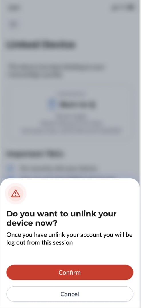 Step 3: To unlink successfully, select ‘Confirm’ on the confirmation prompt and complete biometric verification. | ![]() |