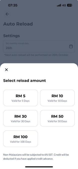 Step 3: Select your preferred date for the auto reload. | ![]() |
