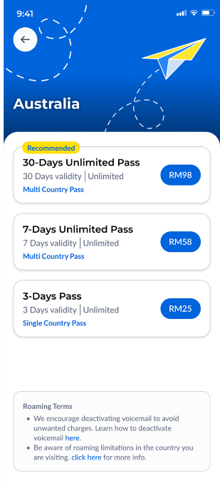 You can pre-book your roaming pass in advance with CelcomDigi app!