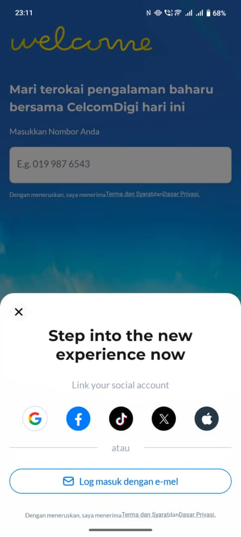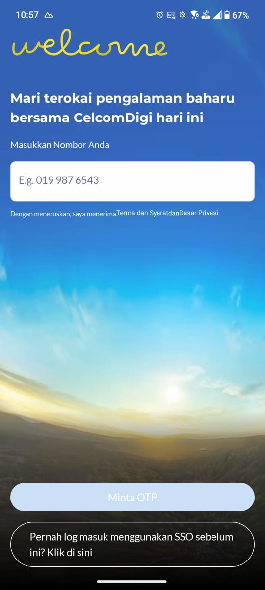 Terdapat 3 cara untuk log masuk ke aplikasi CelcomDigi anda.