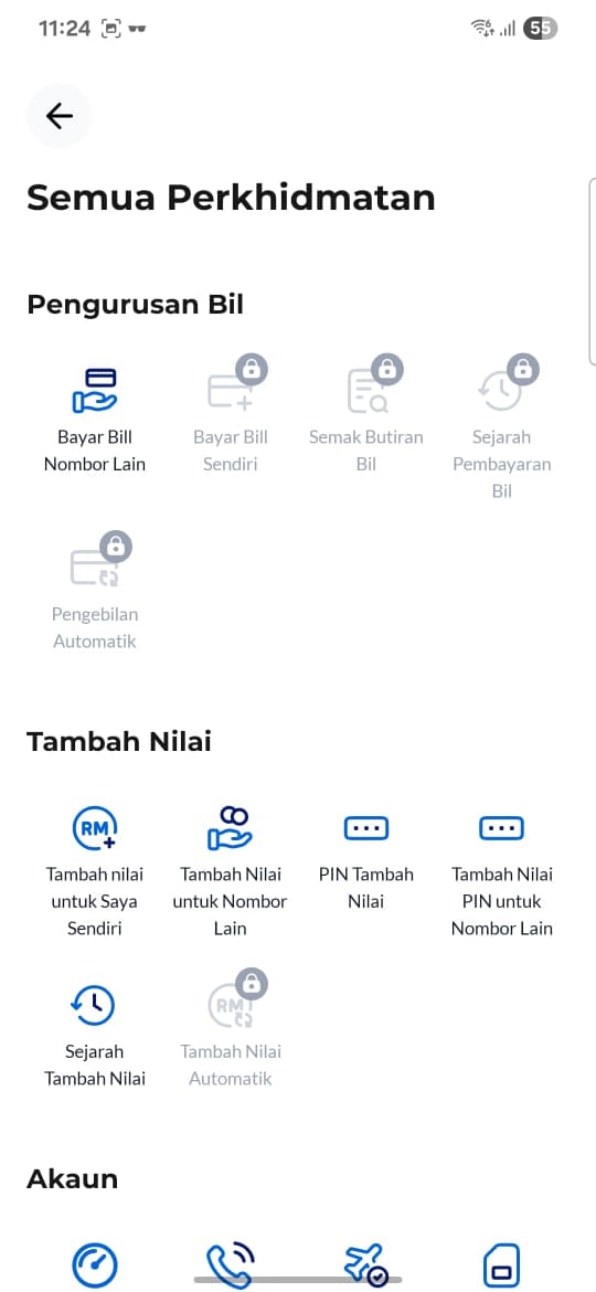 Langkah 1: Di halaman utama, pilih ‘Semua Perkhidmatan’ dibawah kategori ‘Keperluan Anda’. Kemudian pilih ‘Pin Tambah Nilai’ | ![]() ![]() |