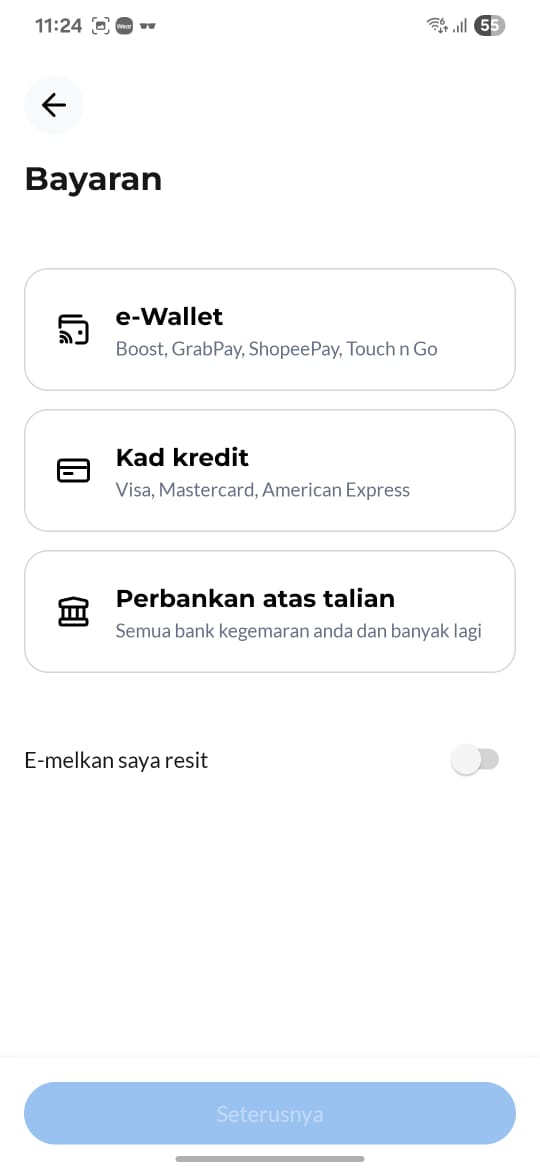 Langkah 3: Pilih cara pembayaran yang dinginkan. | ![]() |