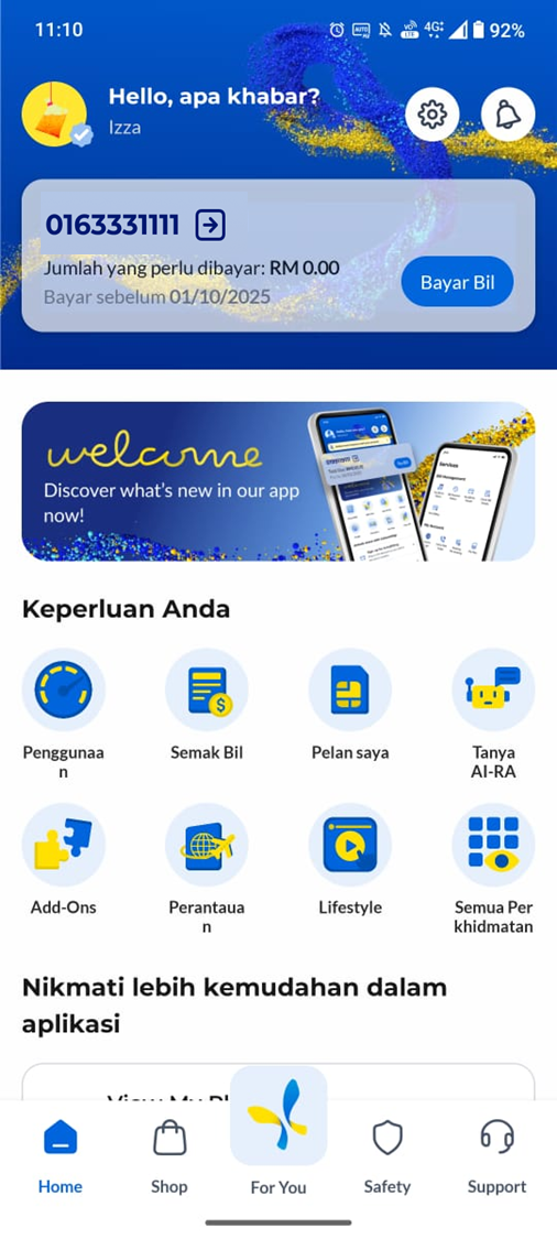Langkah 1: Di halaman utama aplikasi CelcomDigi anda, klik ‘Perantauan’. | ![]() |